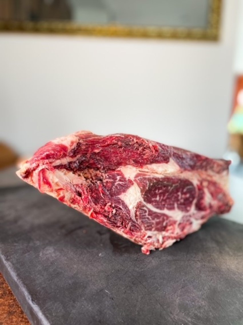 La Montbéliarde est une race mixte, originaire du massif du Jura, dans l’est de la France. Très appréciée pour la qualité de son lait, sa robustesse et son appétence pour l’herbe, elle s’est développée dans toutes les régions françaises mais également sur tous les continents. Elle signe de nombreux grands crus fromagers sous AOP comme le Comté, le Saint Nectaire, la Tomme de Savoie…Au delà de ses qualités de laitière, la Montbeliarde, engraissée comme il se doit, donne une viande de tout premier choix, persillée, tendre à souhait, avec une rouge intense. elle a aussi, pour la restauration, l’avantage de ne pas être trop lourde, avec des trains de cotes assez étroits, offrant une belle épaisseur dans l’assiette. Ajoutez à cela une maturation douce, et vous obtenez l’une des toutes meilleures viandes à déguster. Un véritable coup de cœur !